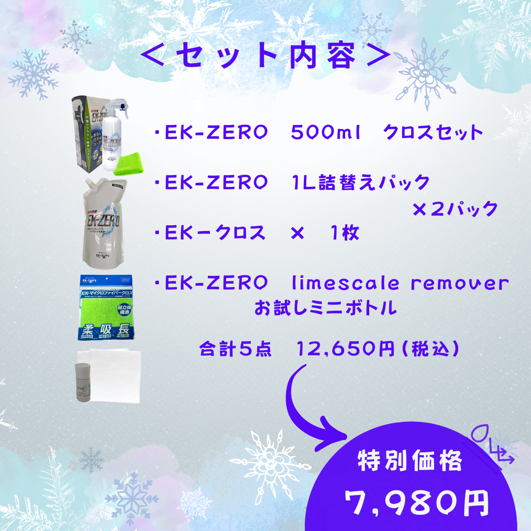 【ラジオ特別セット】EK-ZERO500mlクロスセット×1 1L詰め替えパック×2 EK-クロス×1 limescaleremoverお試し用ミニボトル×1